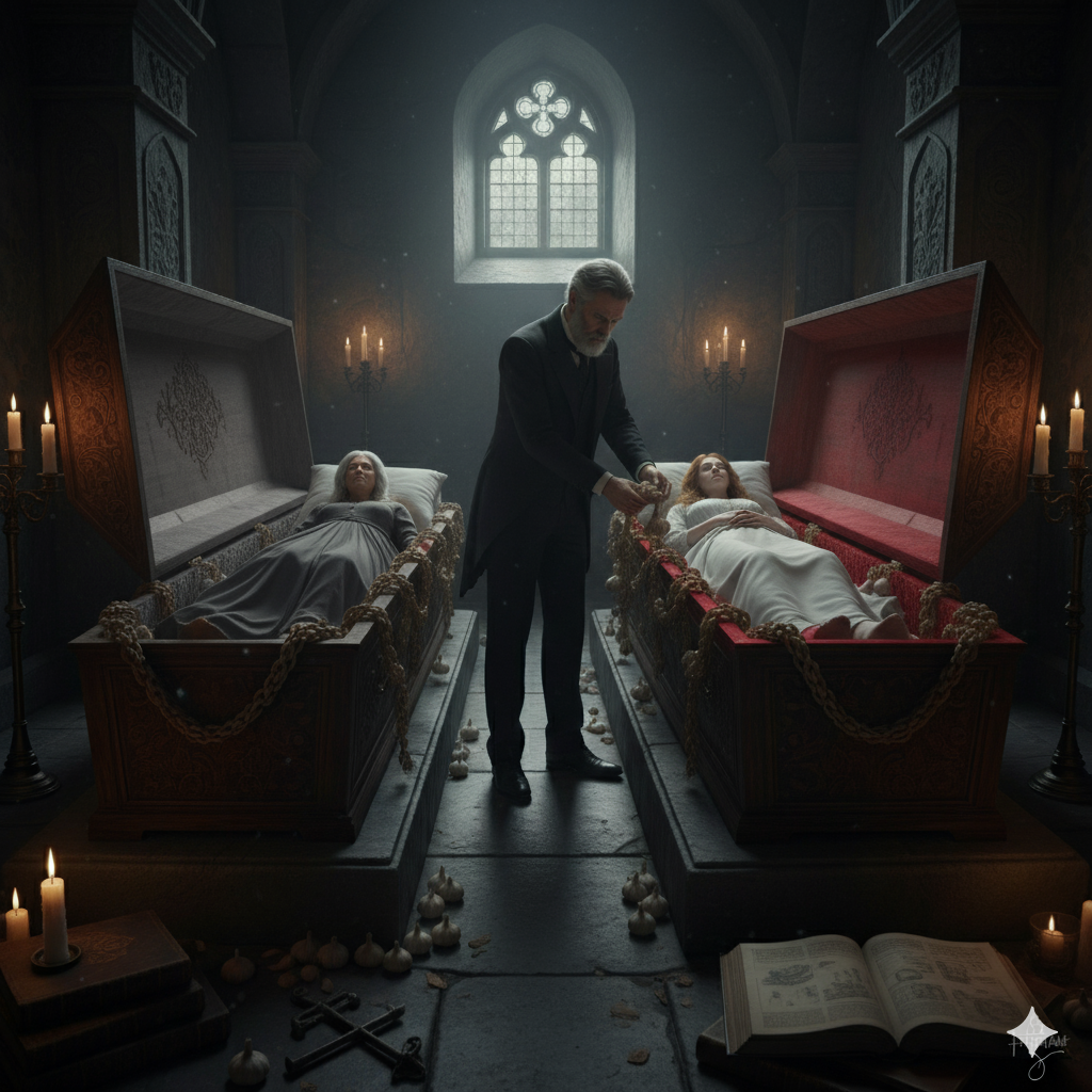 John was getting worried. He knew Van Helsing very well. Van was asking John to not ask many questions and do what he was asking him to do. One day John saw that Van was putting garlics in the coffins, he stayed quite.